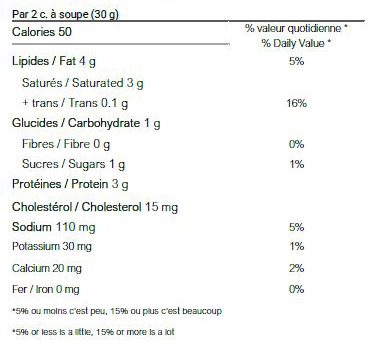 Lait et crème pasteurisés, Sel, Culture bactérienne, Présure